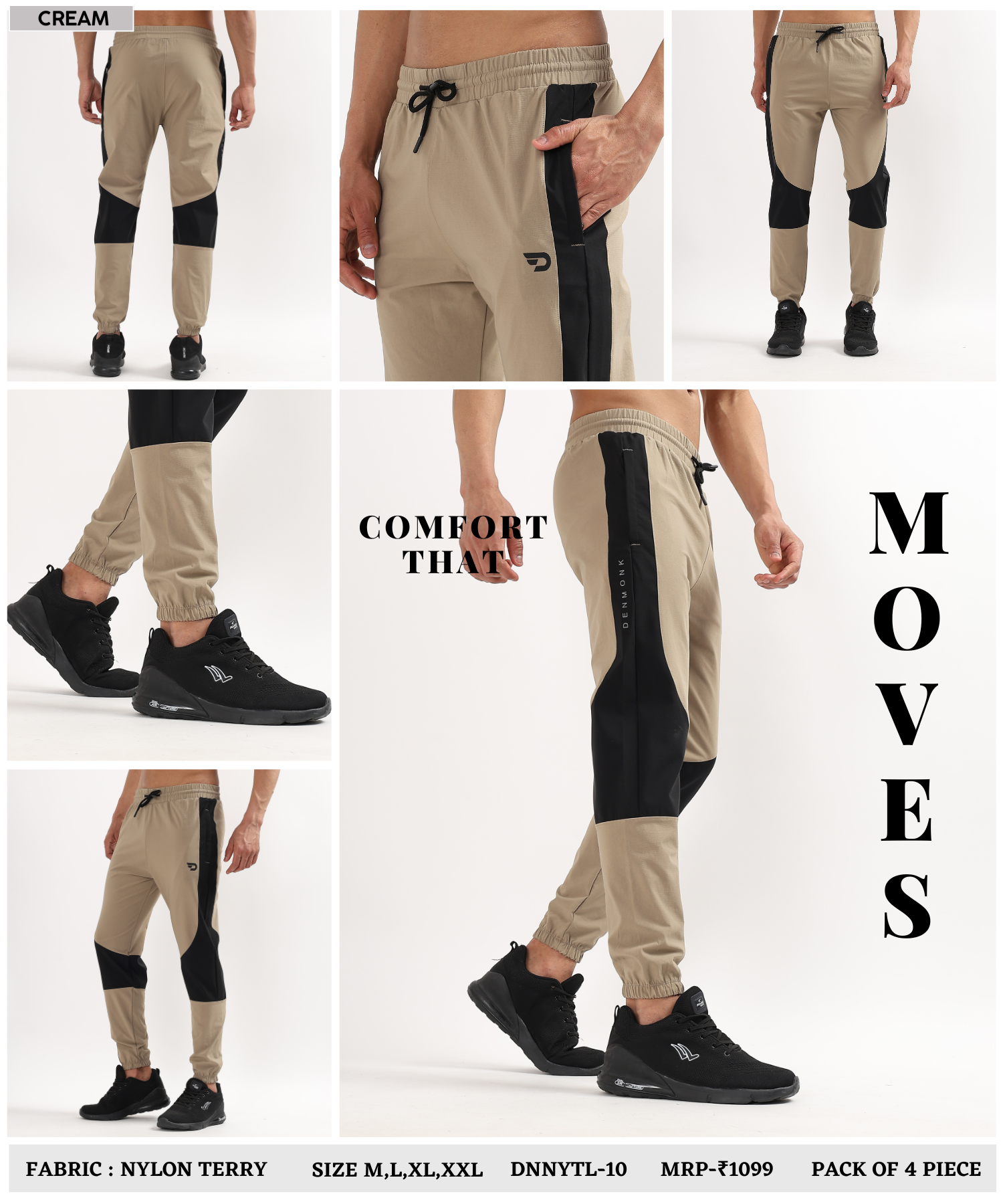 Bold Denmonk “D” logo printed on the left thigh