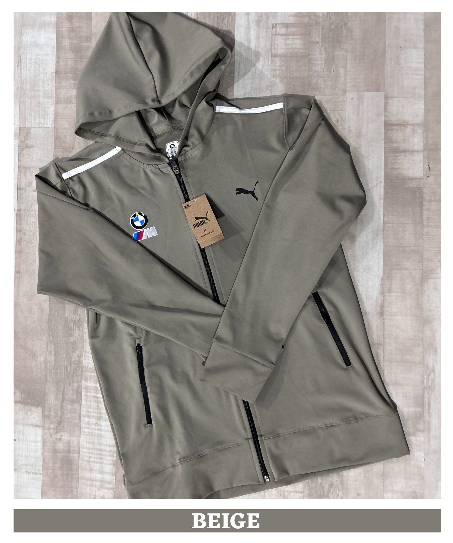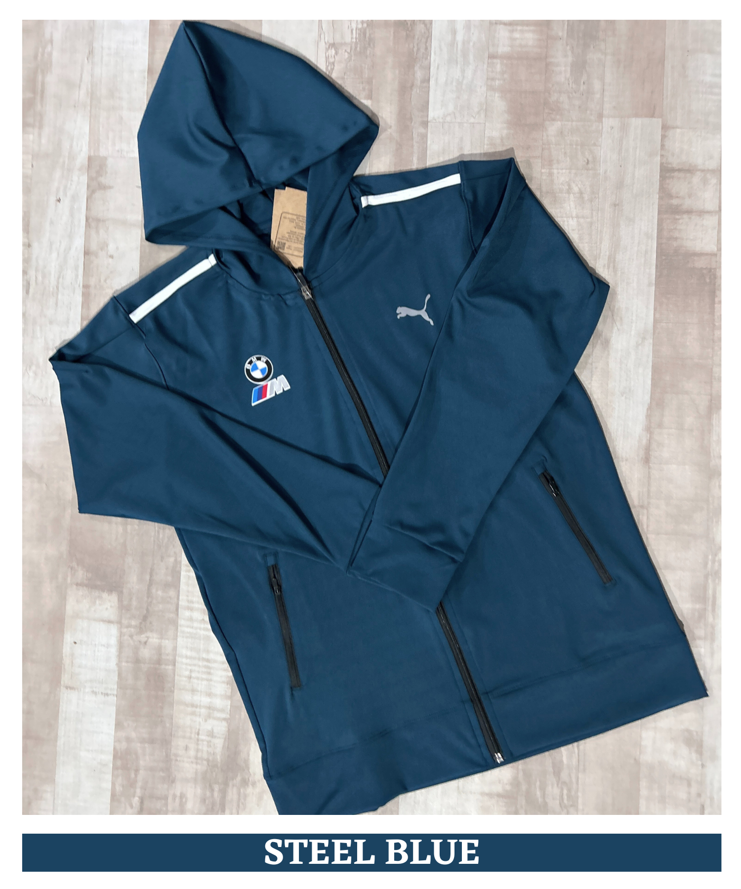 Front zipper closure, Attached Hood, Contrast shoulder stripes, Rib cuffs & Hemline